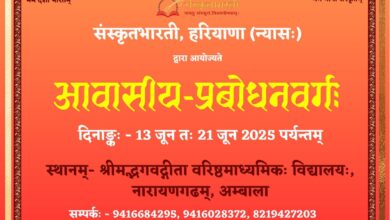 हरियाणाप्रदेशे संस्कृतभारत्या: आवासीयवर्ग: नारायणगढे, अम्बालायां १३ जून २०२५ अपराह्णतः २१ जून २०२५ प्रातः पर्यन्तं