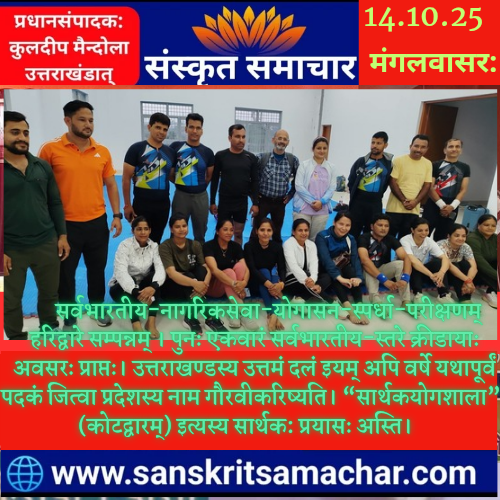 सर्वभारतीय-नागरिकसेवा-योगासन-स्पर्धा-परीक्षणम् हरिद्वारे सम्पन्नम् । राजकीय: वरिष्ठ: माध्यमिक: विद्यालय: काण्डाखाले सेवारत: योगाचार्य: व्यायाम शिक्षक: राकेशकण्डवाल: कथयति यत् पुनः एकवारं सर्वभारतीय-स्तरे क्रीडायाः अवसरः प्राप्तः।