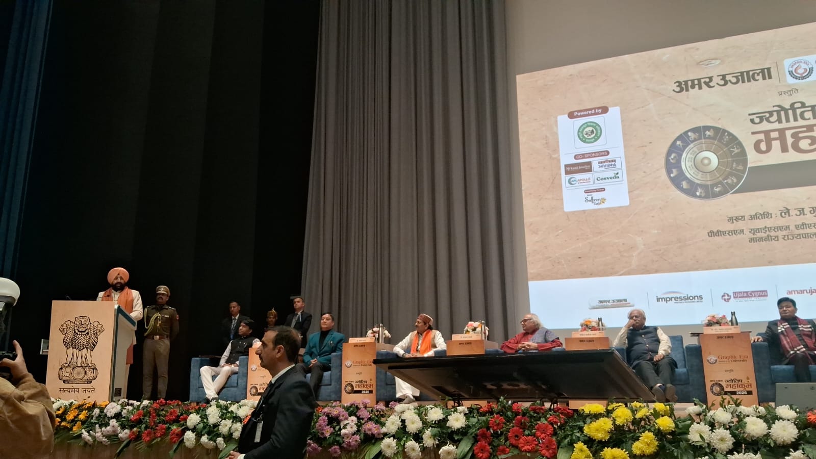 स्वीयसम्बोधने राज्यपालमहाभागः अवदत्— “अन्ताराष्ट्रियस्तरे प्रतिष्ठिताः ये द्वादश ज्योतिषविदः मया सह मंचे विराजन्ति, ते वास्तविकरूपेण राष्ट्रस्य तथा च अन्ताराष्ट्रियजगतः ज्योतिषविद्यायाः संवाहकाः, ब्राण्ड्-अम्बेस्डर इत्यनेन रूपेण अपि कार्यं कुर्वन्ति। ज्योतिषविद्या क्वाण्टमितिसिद्धान्ताधिष्ठिता विद्या अस्ति, या समाजस्य सर्ववर्गाणां सम्यक् मार्गदर्शनं करोति।”