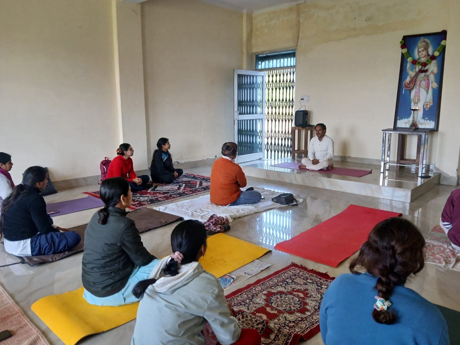 डॉ० रमाकान्त-कुकरेती-महोदयेन उक्तं यत् प्रतिदिनमेव ध्यानाभ्यासेन मानसिकशान्तिः प्राप्यते। तदेव जीवनस्य आधार: वर्तते। योगप्रशिक्षिका कु० सोनम-रावत-महोदया अवदत् यत् अस्यां कार्यशालायां ताडासनम्, त्रिकोणासनम्, भुजङ्गासनम्, पवनमुक्तासनम्, वज्रासनम् , सूर्य-नमस्कार: इत्यादीनि आसनानि, अनुलोम-विलोम:, कपालभाति:, भ्रामरी इत्यादयः प्राणायामाः, ध्यानप्रक्रिया च अध्याप्यन्ते। सा अवदत् यत् नियमिताभ्यासेन न केवलं रोगप्रतिरोधकशक्तिः वर्धते, अपितु चिन्ता अपि न्यूनो भवति।