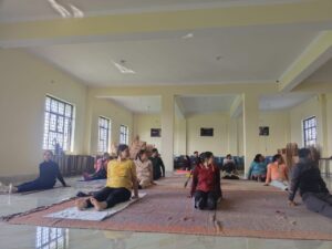 सार्थकयोगशालाया: सोनमरावतप्रशिक्षिका शिक्षयति योगं